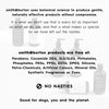 Parabens, Cocamide DEA, SLS/SLES, Phthalates, Phosphates, PEGs, PPGs, EDTA, DPEG, Silicone, Petro-Chemicals, Artificial Colours, Mineral Oils, Synthetic Fragrances or Dyes